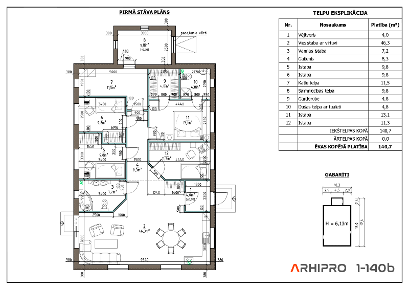 Guļamistabas: 4 Platība: 140 m² Garāža: nav