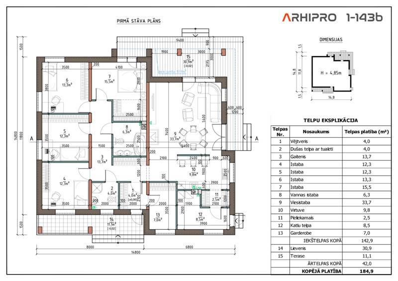 Guļamistabas: 3 Platība: 142 m² Garāža: nav