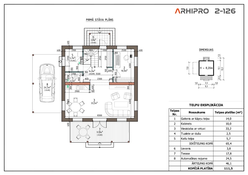 Guļamistabas:3 Platība: 126 m² Garāža: nav