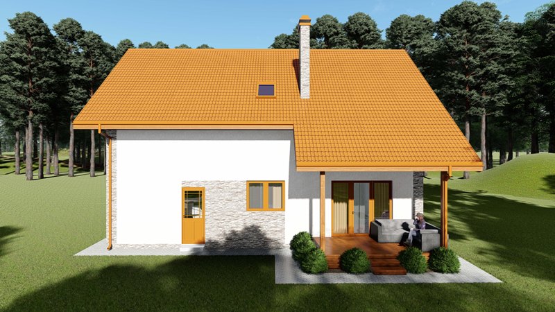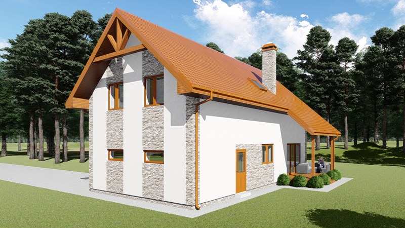 Mājai pirmajā stāvā ir ieplānota plaša viesistaba apvienota ar virtuvi, kā arī četras guļamistabas otrajā stāvā.