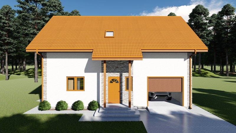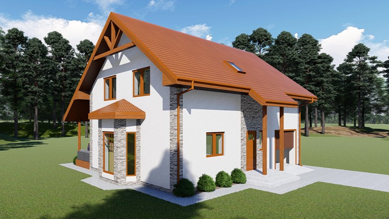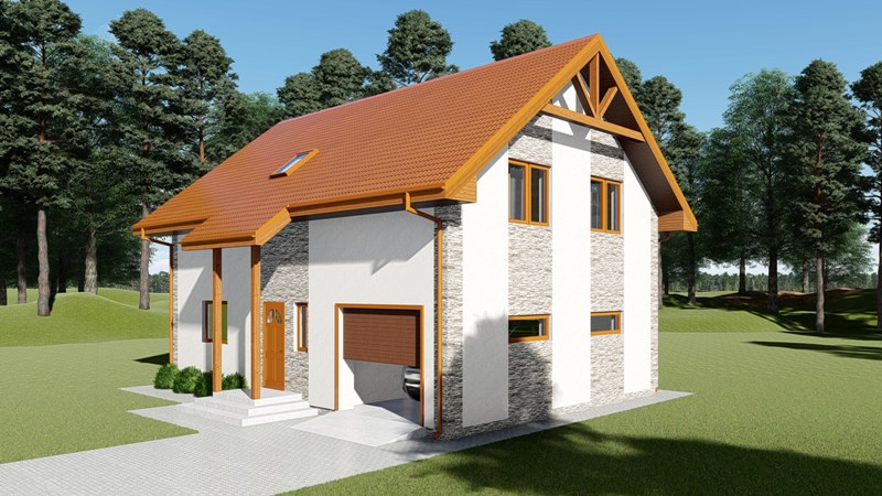 Divstāvīga ģimenes māja ar slēgtu garāžu un terasi ar nojumi.