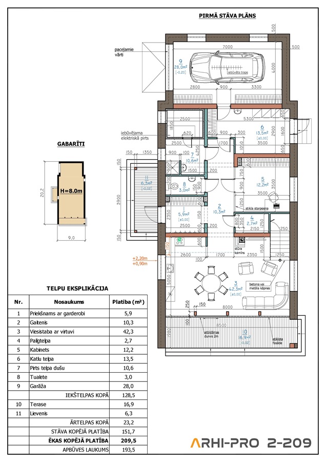 Guļamistabas: 3 Platība: 209 m² Garāža: ir