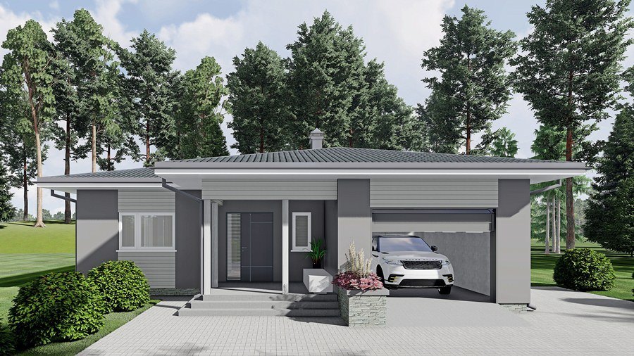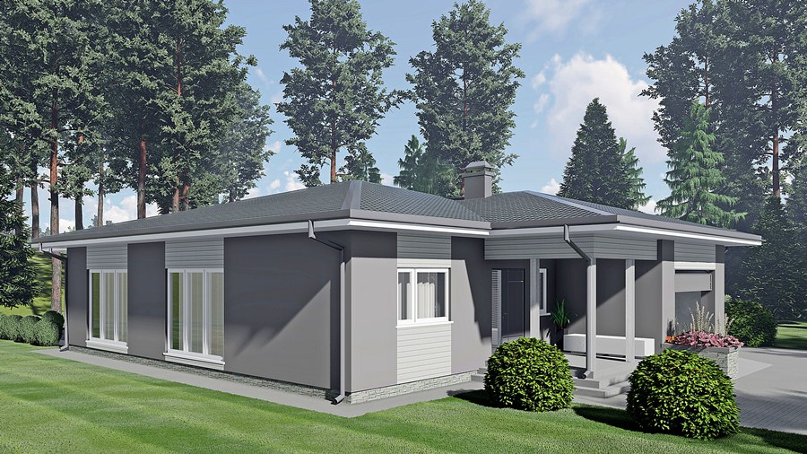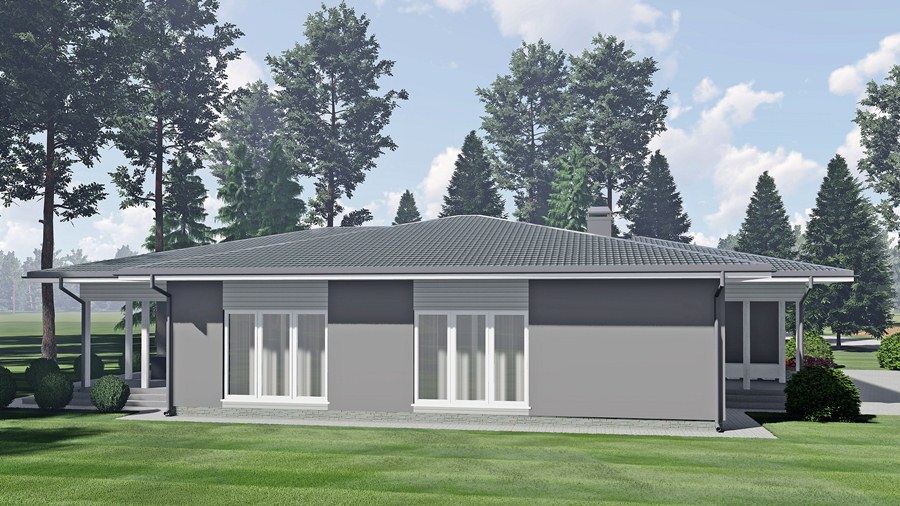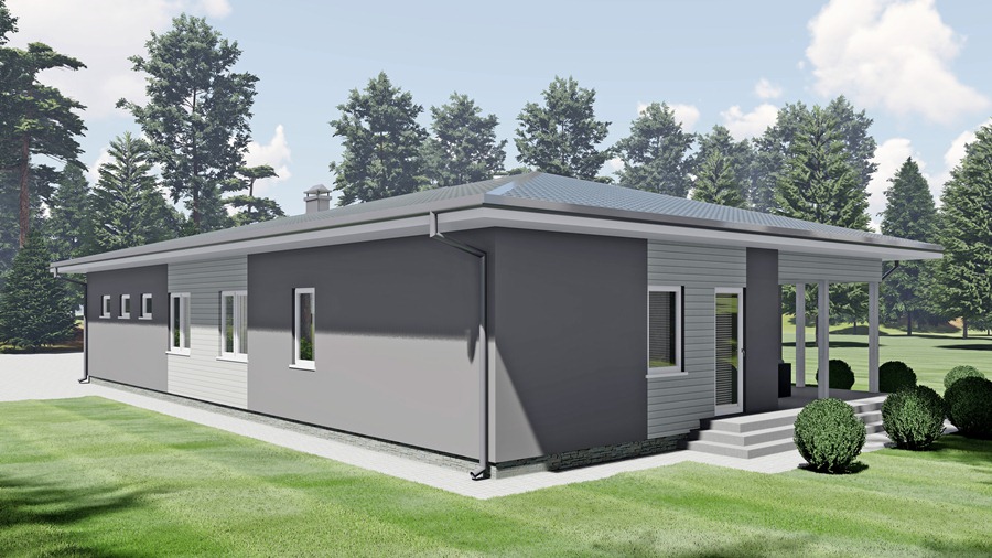 Klasiska stila māja, kas projektēta kā vienstāvīga ģimenes māja ar terasi un garāžu vienai automašīnai. Mājā ir ieplānota ļoti plaša viesistaba (49.9m²), kas apvienota ar virtuvi (14.0m²). Pārējās telpas - trīs guļamistabas (saimnieku istabai atsevišķa garderobe 5.6m²), vannas istaba ar tualeti, rezerves/viesu tualete un katlu telpa.