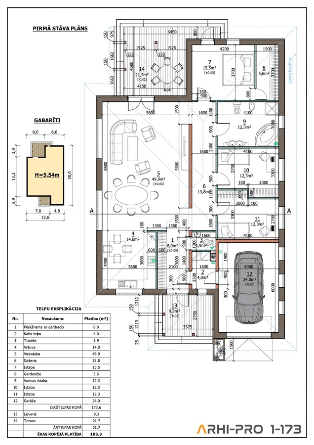 Kopējā platība – 195.3m²